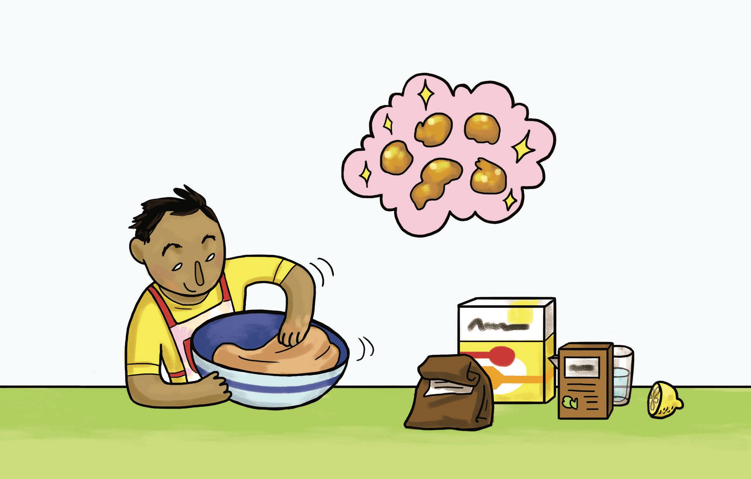 À l’aide d’une cuillère à soupe prélever de la pâte puis la faire glisser dans l’huile chaude en s’aidant d’une deuxième cuillère.